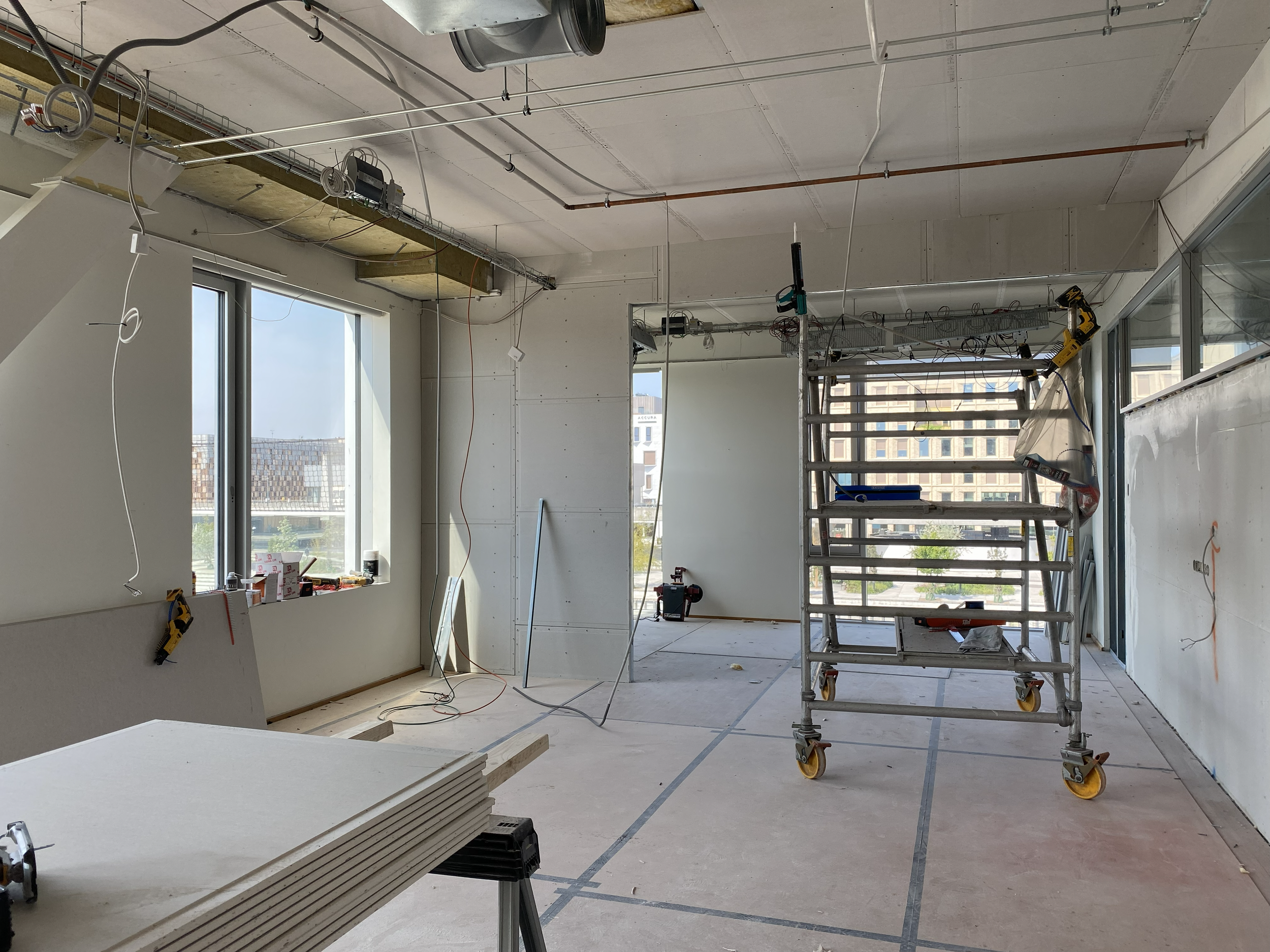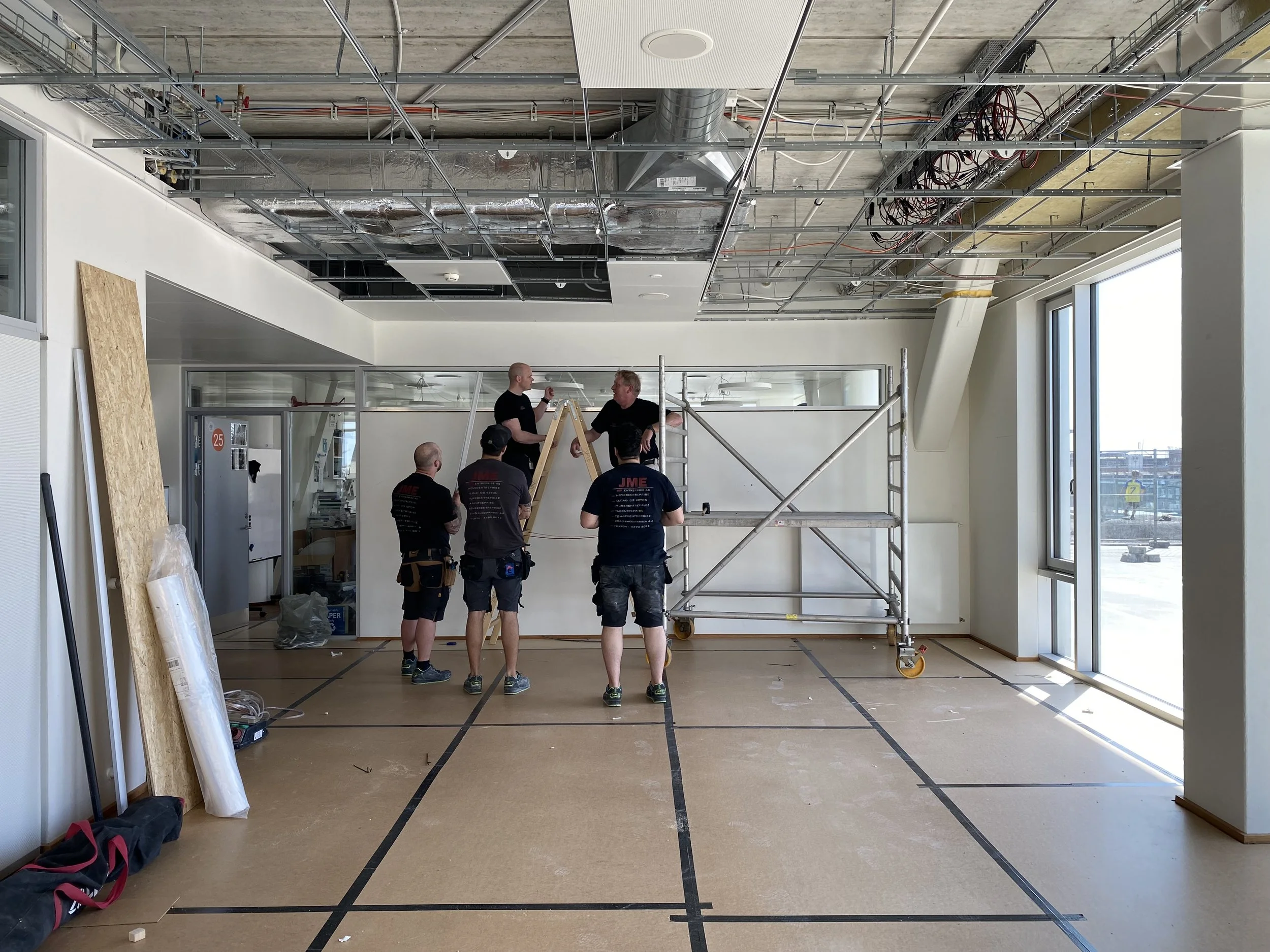 Derudover har vi stået for istandsættelse af eksisterende lofter. Her er der arbejdet med at forbedre både det æstetiske udtryk og de akustiske forhold, så rummene fremstår lyse, moderne og behagelige at opholde sig i.