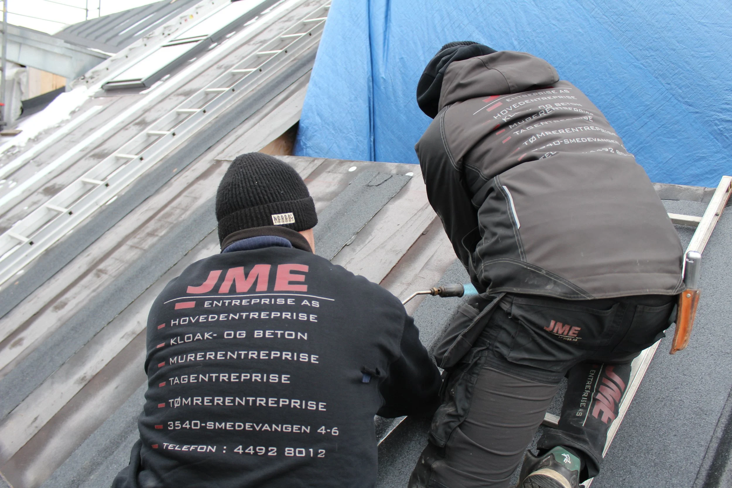 Hos JME Entreprise har vi murere, tømrere og tagdækkere i egenproduktion. Vi bestræber os altid på at ansætte dygtige og veluddannede folk, som også fungerer godt rent socialt. Der er vigtigt for os at vi kan stille med et stærkt, homogent og velfungerende hold.
